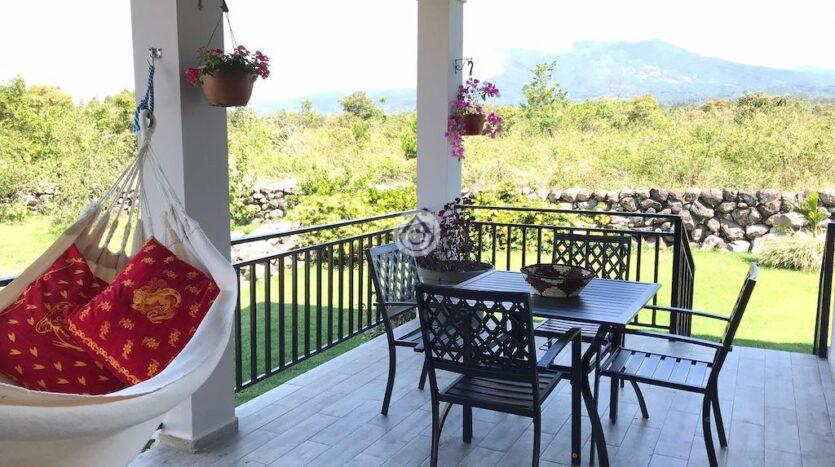 At the back of the house you can enjoy a terrace, with direct access to a small garden with views of the Barú Volcano, the lot is fenced with volcanic stones, this is very characteristic of the Boquete area.