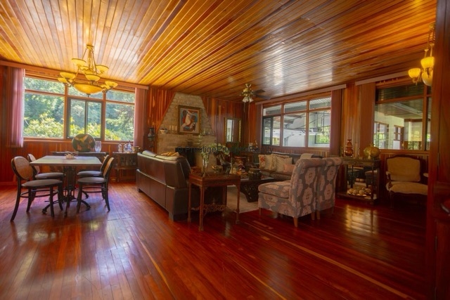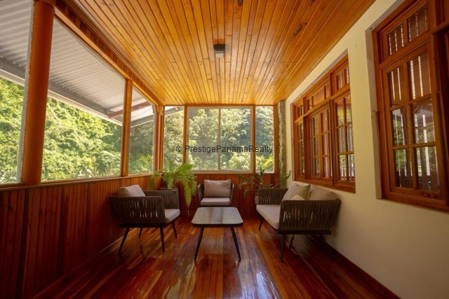 Enjoy the cool mountain climate of Tierras Altas in this spacious fully furnished home located in Bambito, Chiriquí. With 4,305 sq ft of construction and surrounded by 12.35 acres of nature, this unique property offers complete privacy, direct access to the Chiriquí Viejo River, its own natural spring, and private trails through primary forest. An ideal retreat for those seeking tranquility, nature, and a comfortable place to live or work remotely.