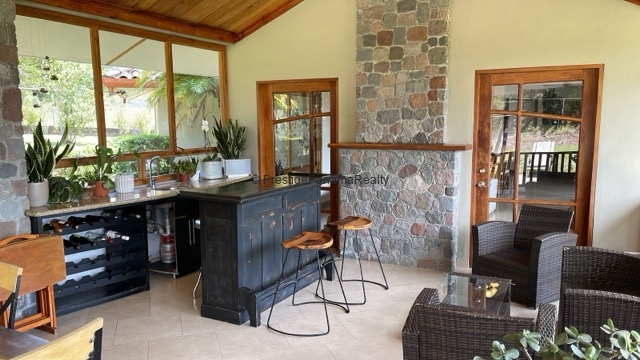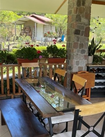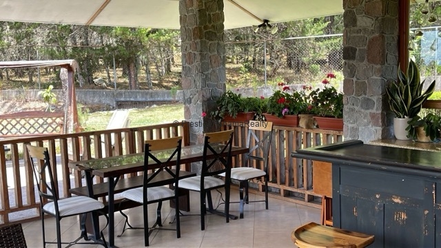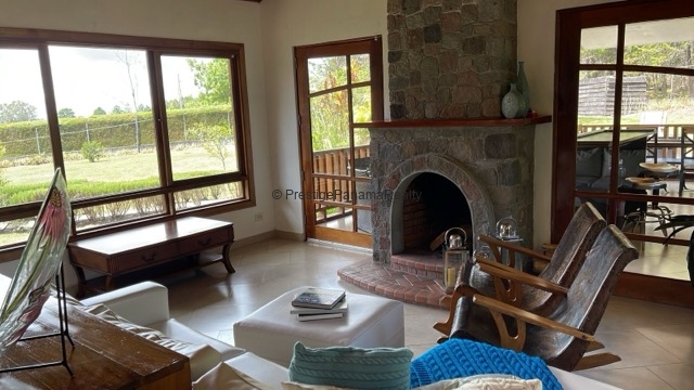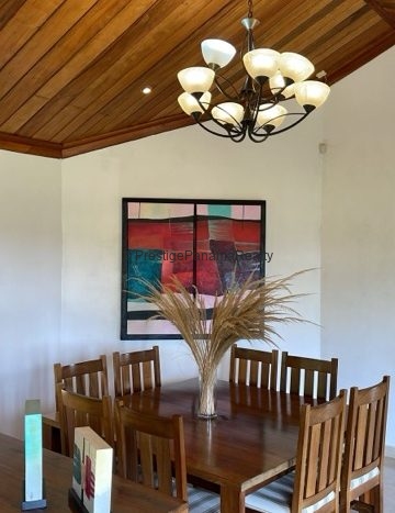 La casa cuenta con cielo raso machihembrado, aportando un toque rústico que se integra perfectamente con el ambiente natural de Volcán. Los revestimientos en piedra en la fachada frontal y detalles en el interior añaden carácter y encanto a la propiedad.