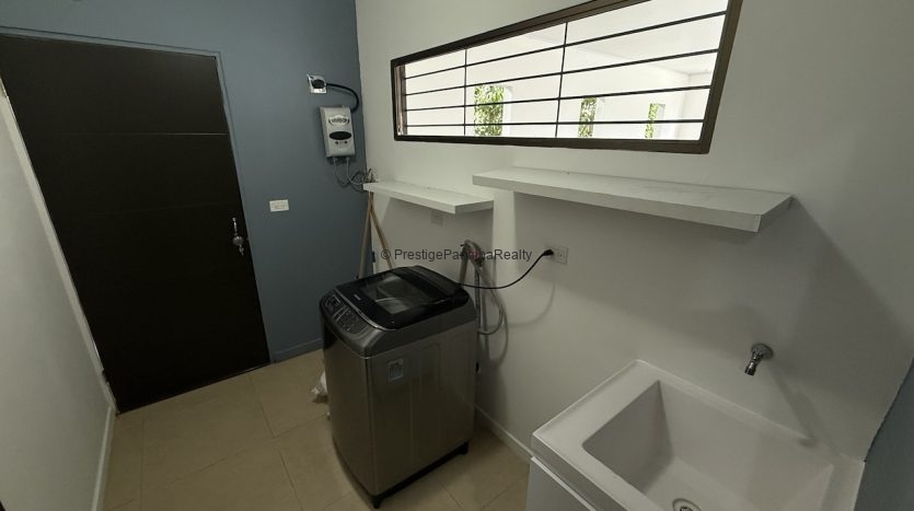 - Lavandería interior equipada con lavadora y calentador de agua.