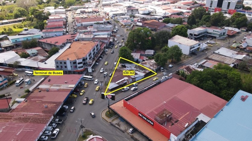 Este lote de 539 m² se encuentra estratégicamente ubicado en una de las zonas más concurridas de la Ciudad de David, justo en la salida de buses de la Terminal de Transporte, el punto más movido de la ciudad. Gracias a su ubicación privilegiada y su forma triangular, tiene acceso a dos de las avenidas más transitadas, ofreciendo una visibilidad única para cualquier tipo de negocio.