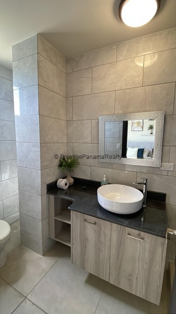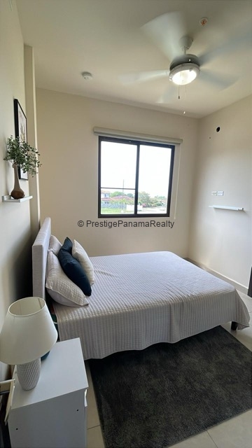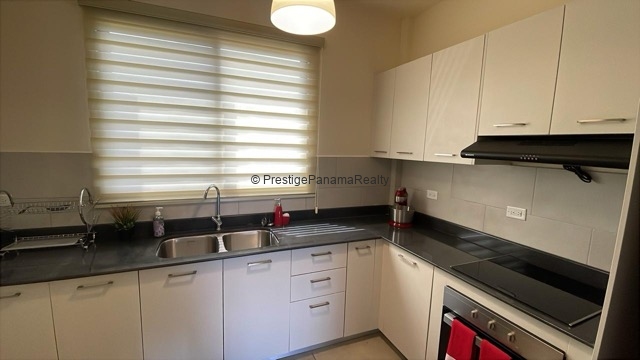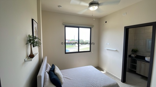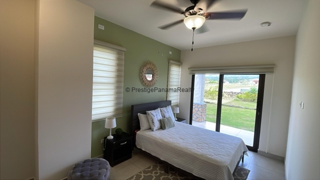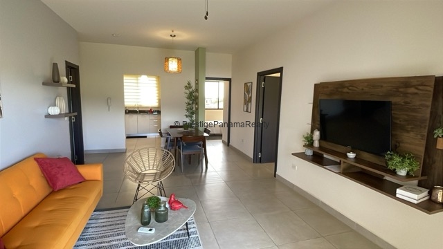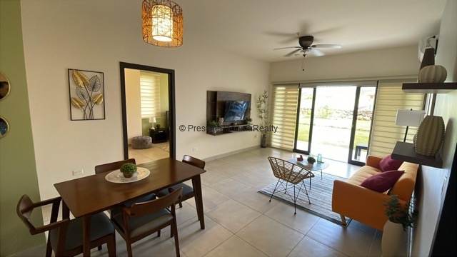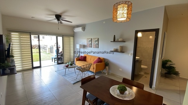 Este elegante apartamento en planta baja combina comodidad, seguridad y contacto con la naturaleza. Cuenta con una amplia sala y comedor integrados, cocina equipada con sobres de granito y línea blanca incluida, además de una terraza privada con vista al majestuoso Volcán Barú.