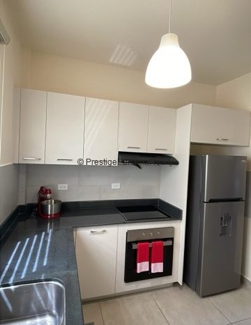 - Cocina equipada: estufa empotrada, extractor y refrigerador