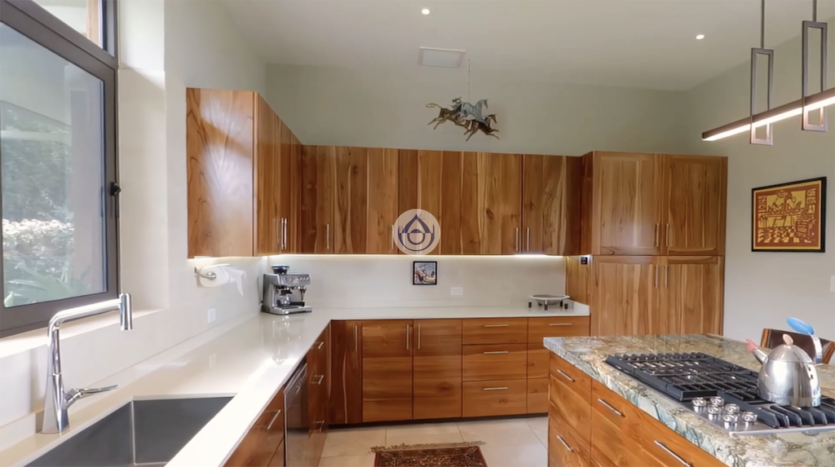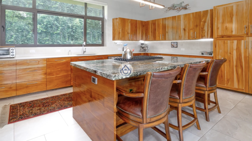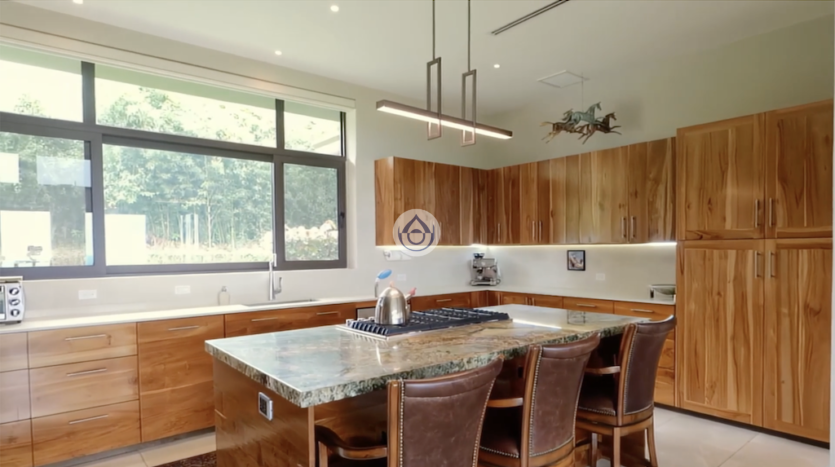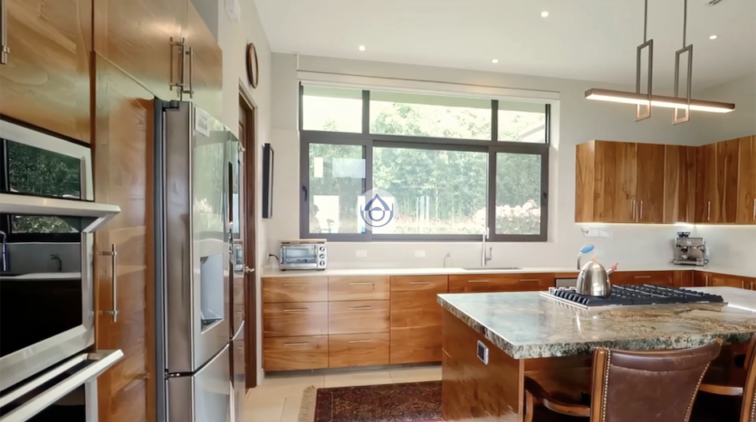 - Cocina bien equipada con gabinetes de teca, encimeras de cuarzo y granito brasileño, electrodomésticos KitchenAid y despensa.